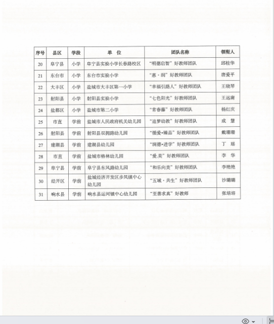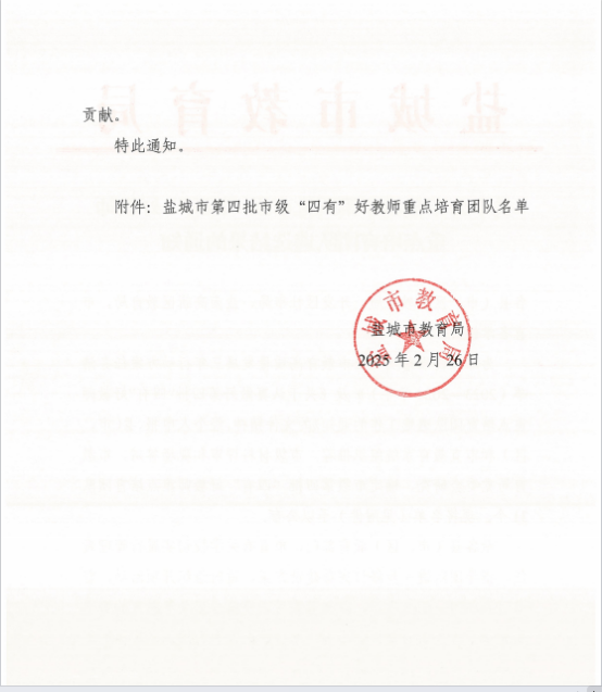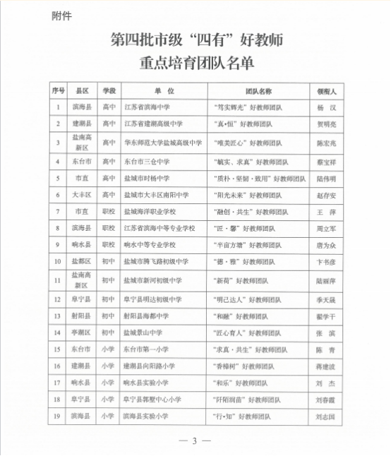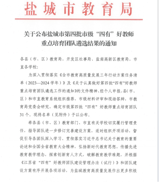 关于公布盐城市第四批“四有”好教师重点培育团队遴选结果的通知